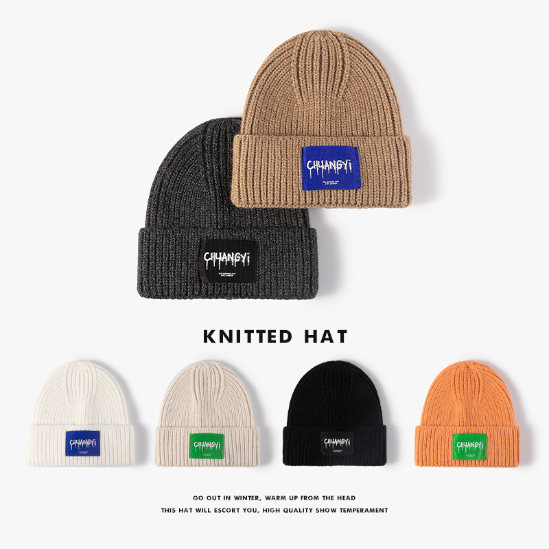 Autumn/Winter Korean Style Three-Needle Women’s Cold Hat Fashion Black Outdoor Warm Knitted Hat for Men Simple Knit Hat.