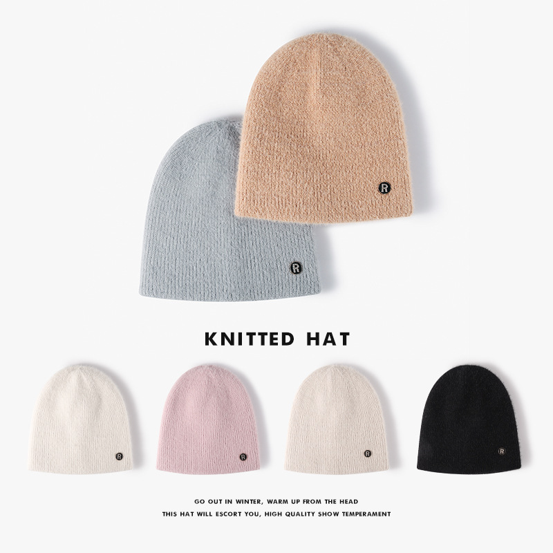 Knitted Hat Women’s Fashion Simple Autumn Winter Cold Hat Outdoor Face-Showing Warm Thick Feather Yarn Hat.